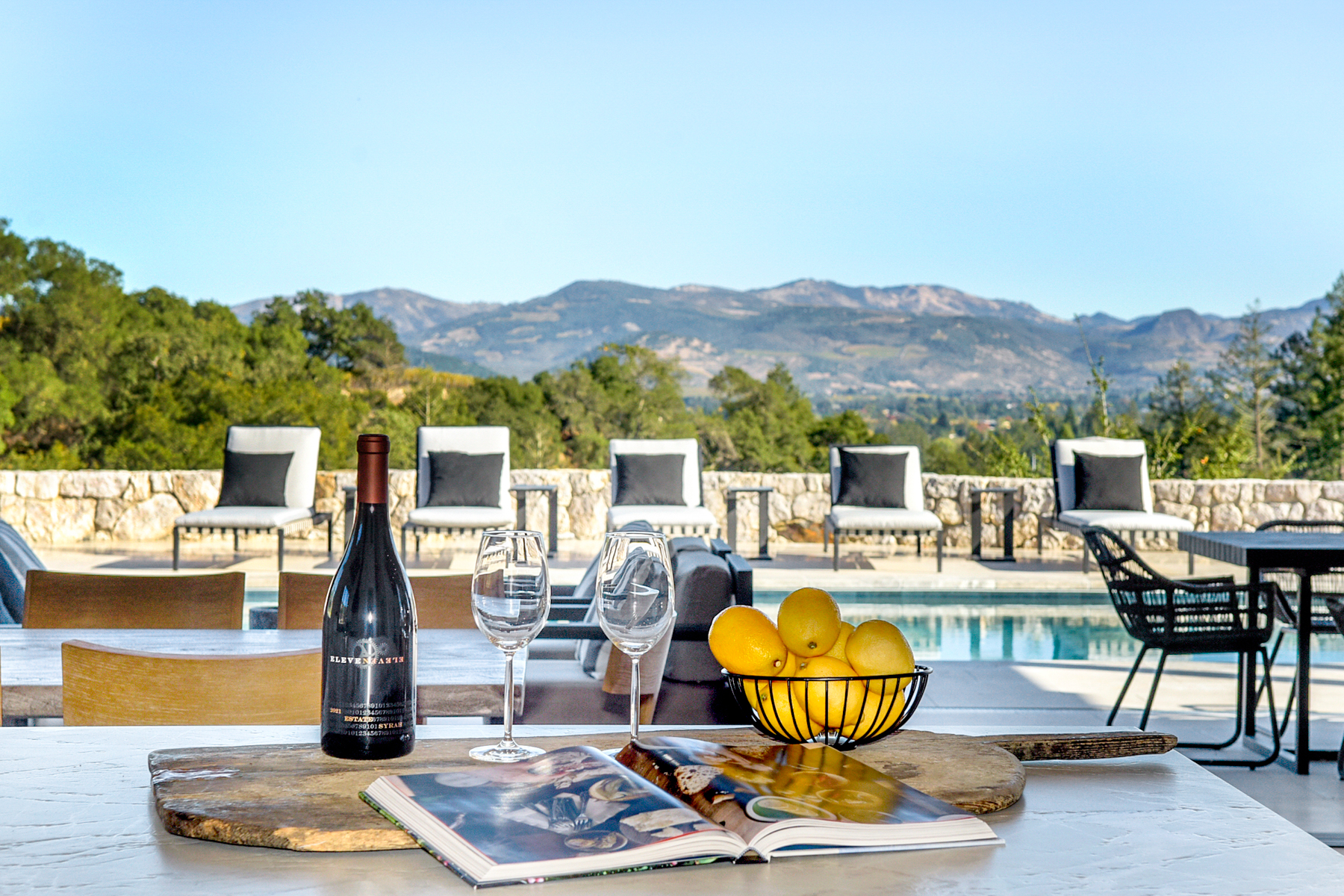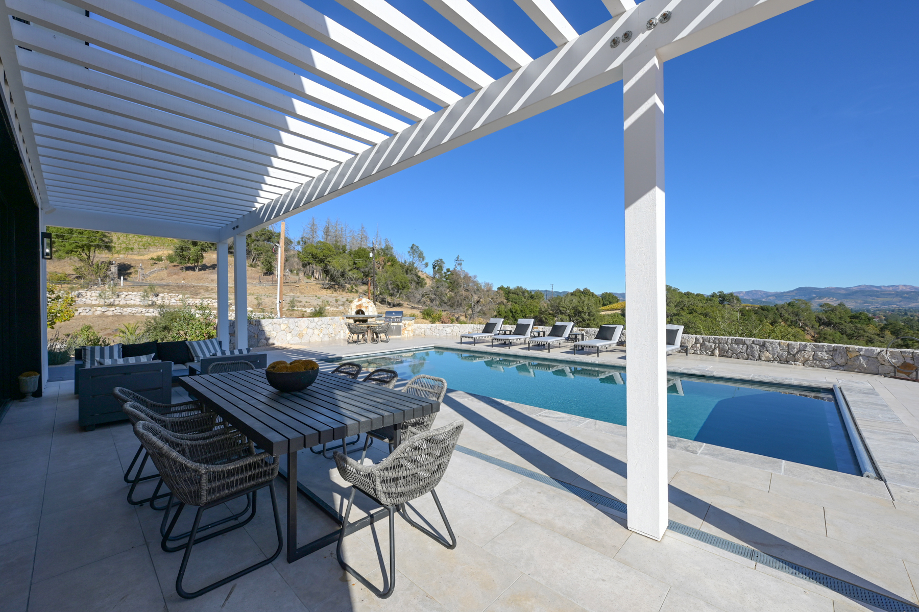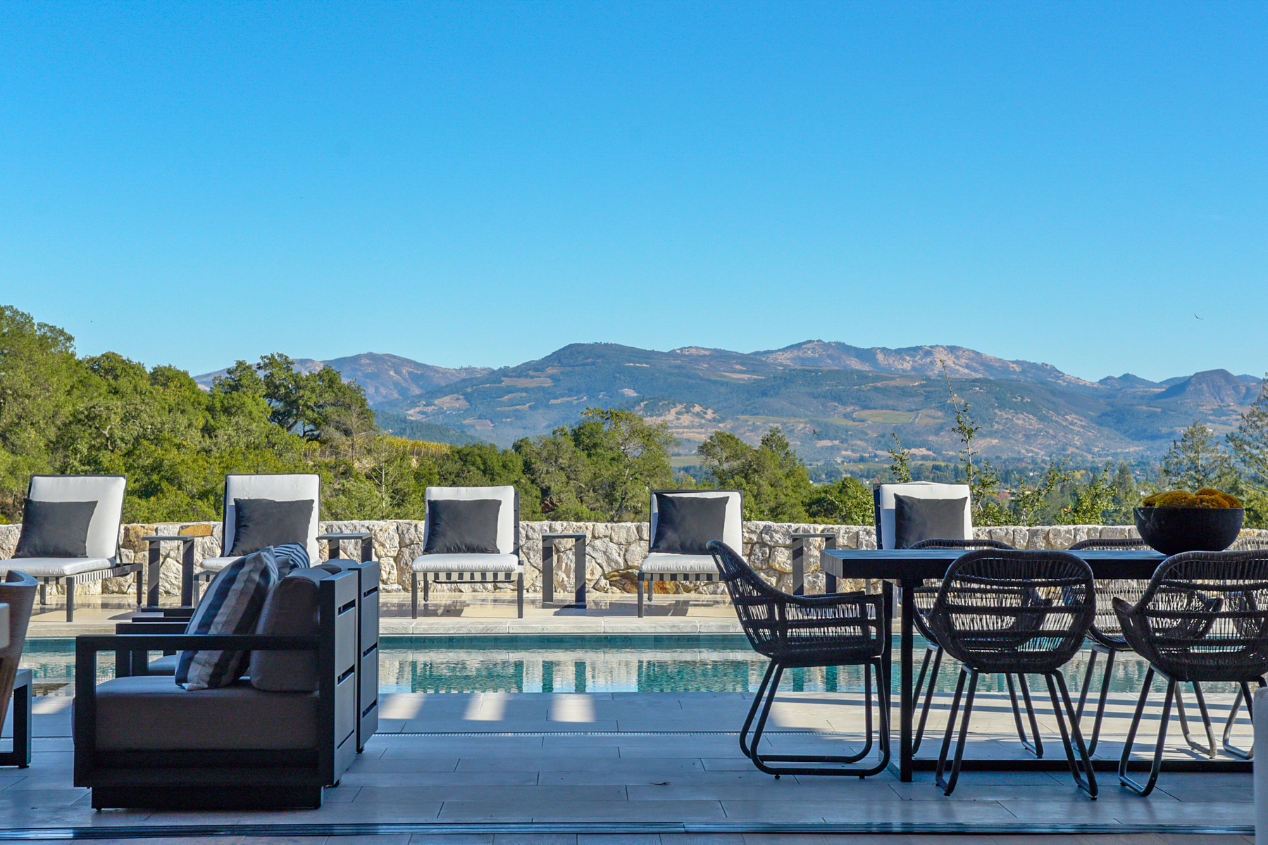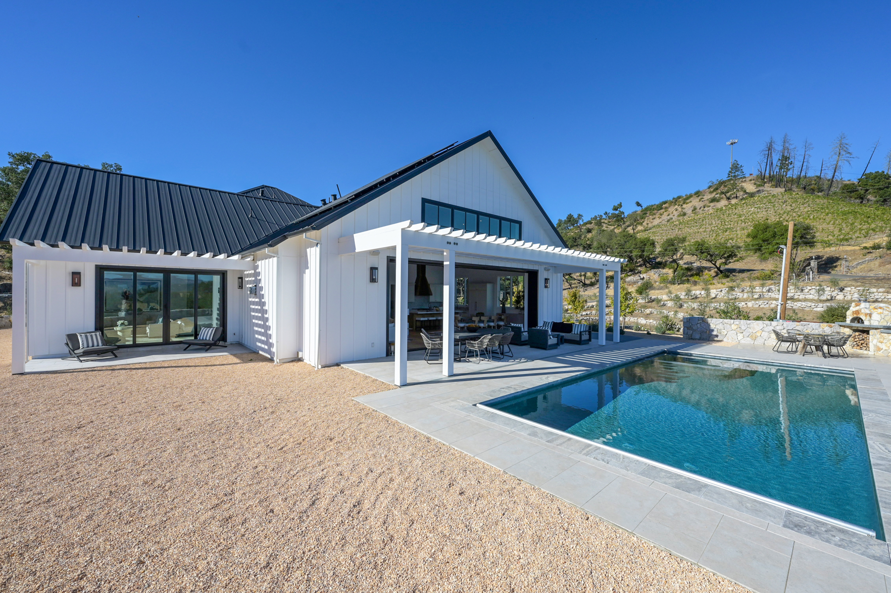 Behind the gates of Madrona Ranch you will find luxury and breathtaking views in this newly constructed masterpiece. Sited on 3.2 acres amidst the hills overlooking St. Helena, and perched atop a gentle rise, this residence was crafted with meticulous attention to detail, and boasts a seamless blend of modern design and timeless elegance. The spacious living areas featuring high ceilings, sleek finishes, and seamless transitions between indoor and outdoor spaces. The gourmet kitchen is a culinary haven, equipped with state-of-the-art appliances, custom cabinetry, and an oversize island perfect for casual dining or culinary creations. Retreat to the luxurious primary suite, where 10-ft glass doors frame breathtaking views. The luxurious ensuite bathroom is a sanctuary of indulgence, with a spa-like atmosphere and designer fixtures. Outside, the expansive patio is an oasis of relaxation, complete with a sparkling pool, spa and an outdoor kitchen. Additionally, above the expansive 4-car tandem garage, a spacious bonus room awaits, offering possibilities for entertainment and relaxation. As you approach the residence, you are greeted by a meticulously crafted paver driveway, adding to the grandeur of the home’s exterior.